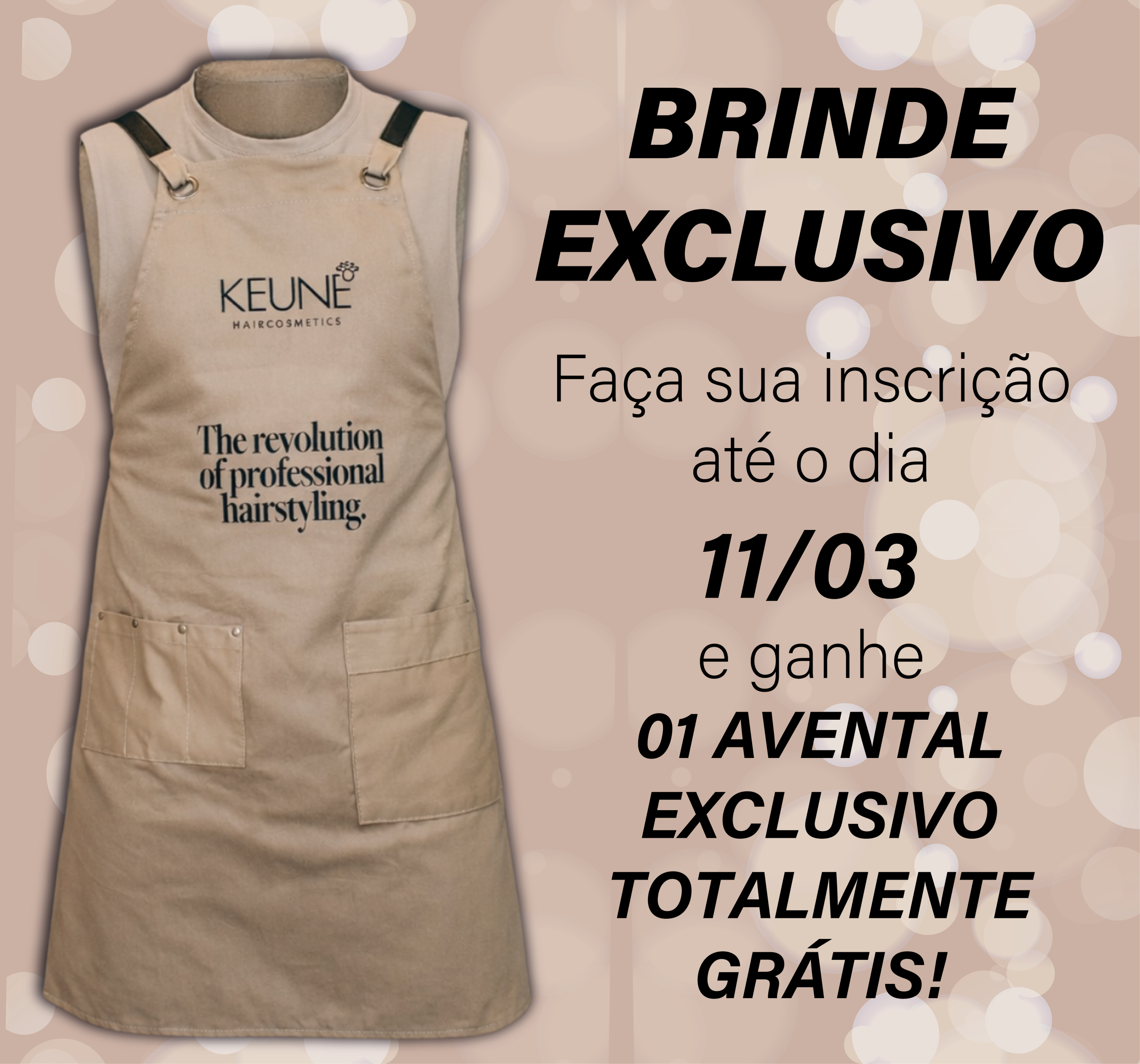 Garanta sua inscrição até 11/03 e ganhe 01 Avental Keune exclusivo, totalmente grátis!